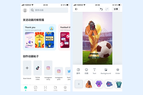 动态贴纸库。这个功能目前只支持分享到whatsapp\Tumblr