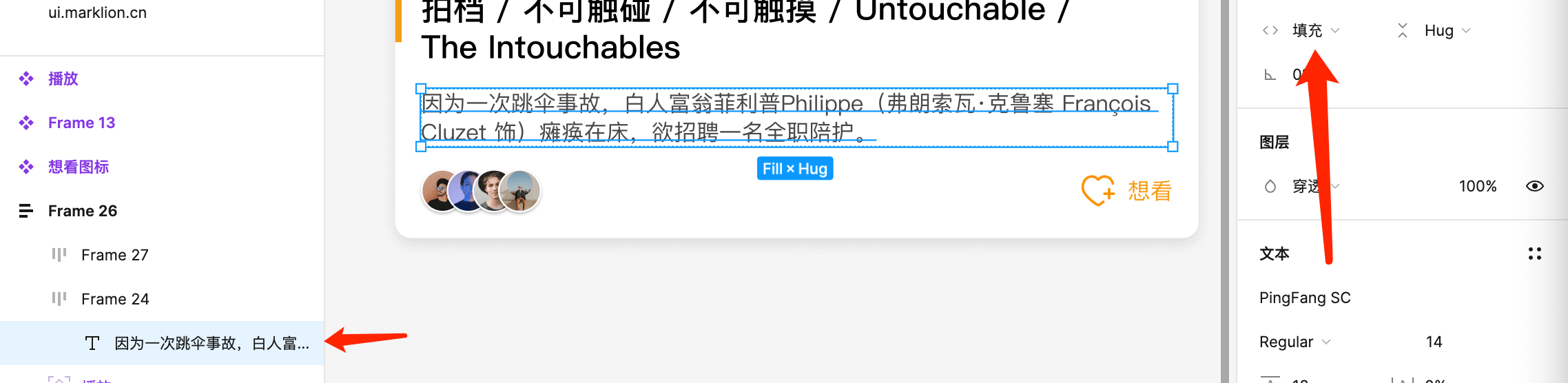 选中黄色的文字和图标添加自动布局,添加项目间距为8px,项目间距即为两个对象之间的距离。
