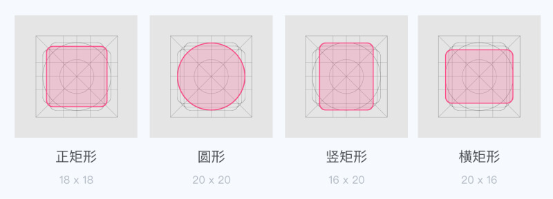 关键线形状是指图标网格中的基础形状。它们被用作图标设计的基本构成单元,以保持一致的视觉比例。
