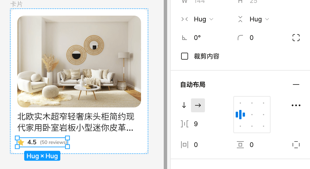4.添加评分小元素,先将三个元素图层一起添加一个水平的自动布局,然后拖入父级容器就可以了。
