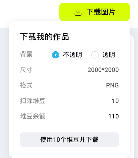 5.下载制作完成的场景,支持PNG或JPG格式的下载,目前每次下载会消耗10堆豆值。