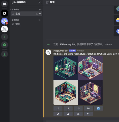 现在,Midjourney 机器人已经成功加入你的服务器。你可以单独与它进行命令交互了