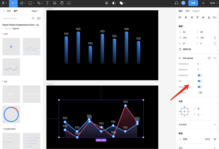 其中最鲜明的特点是它的配置化快速调整图表样式的功能。设计师可以根据需求快速调整图表的显隐、轴类数量、图例样式等。