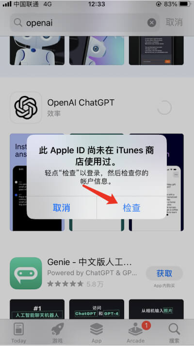 5.在App Store中搜索需要下载的APP,例如OpenAI。
