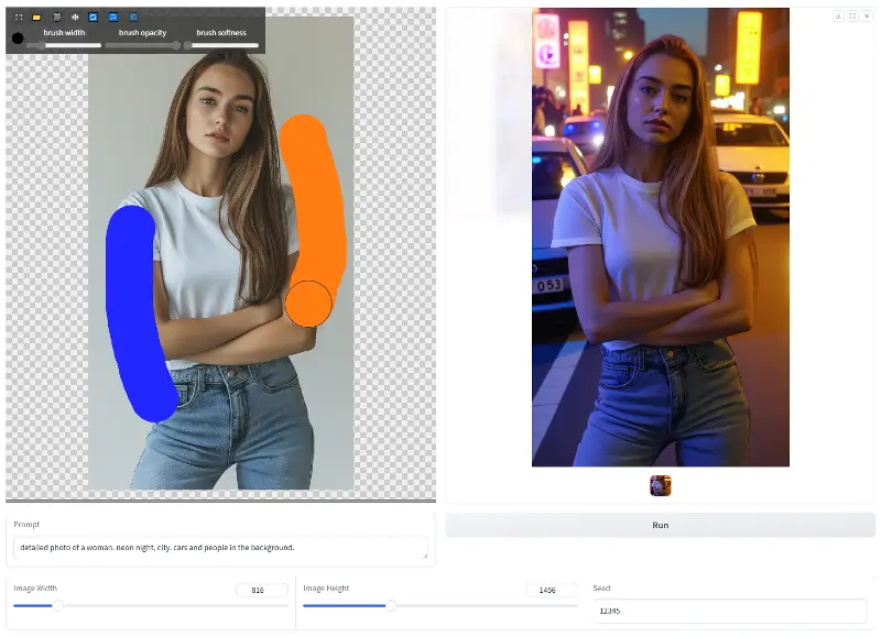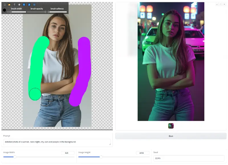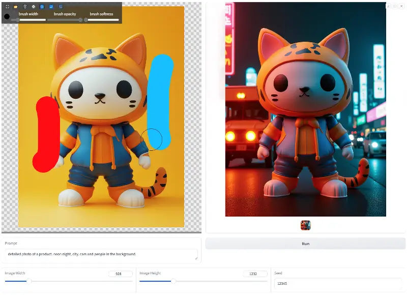 用户可以在图片上涂抹两个颜色区域,用于控制光照的颜色和方向。例如: